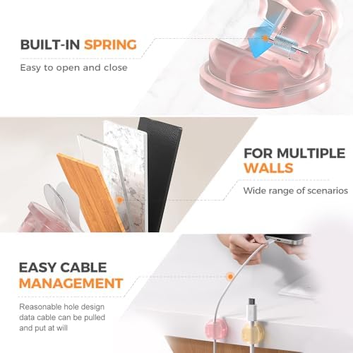 🧲【No-Residue Acrylic Adhesive】The transparent acrylic adhesive pad provides a strong hold on flat, clean surfaces such as wood, glass, or tile. After removal, it leaves no residue and does not damage your desktop or wall, making it suitable for different environments.