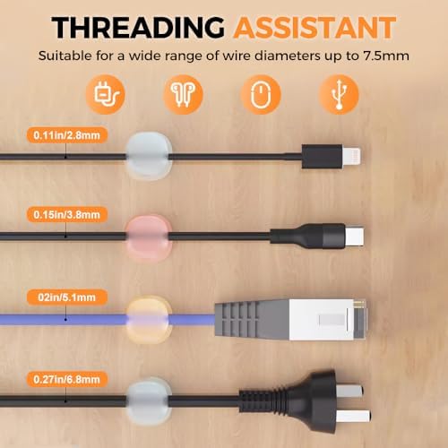 7.5 mm Perfect Cable Slot Diameter : Diameter of 0.3 inches (7.5mm) can hold most cables, such as phone charging cables, USB cords, HDMI thick cables, computer power cords, etc. Besides that, the slot diameter of 7.5mm can perfectly hold a charging head as small as the iPhone original silicone charging cable without falling off, and the held cable can be pulled out smoothly for use