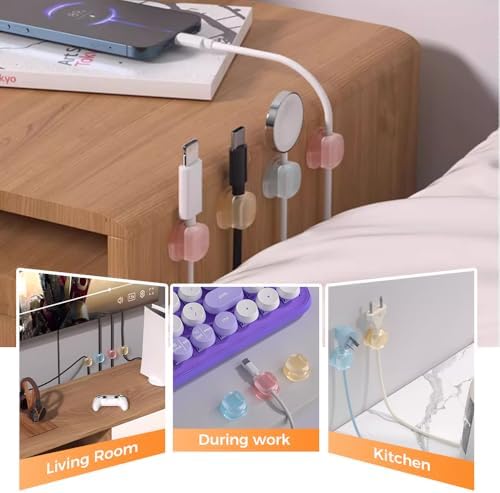 🟢【Compact for Tight Spaces】With a width of 0.86 inch, this organizer fits firmly in narrow spaces and can be hidden in corners like desktops, nightstands, tablesides, or walls. The set includes 6 individual holders, letting you arrange cables in various locations.
