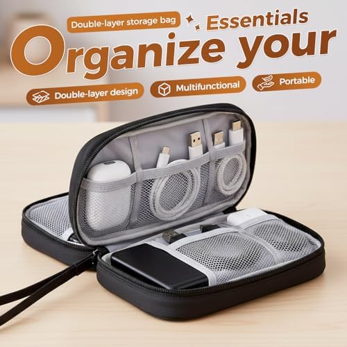 【Tangle-Free Double-Layer Design with Mesh Pockets】Stay organized effortlessly. Featuring two main compartments and multiple separate mesh pockets, this electronics organizer travel case keeps every item in its place, preventing cable knots and scratches on your devices.